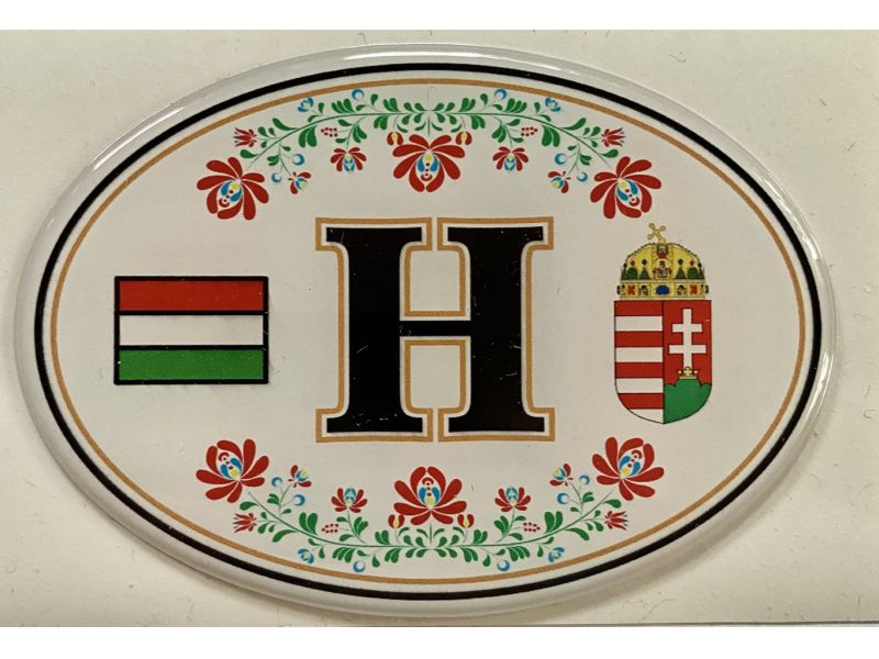 Műgyantás matrica - H betű fehér HUN/Magyar címer virágos
